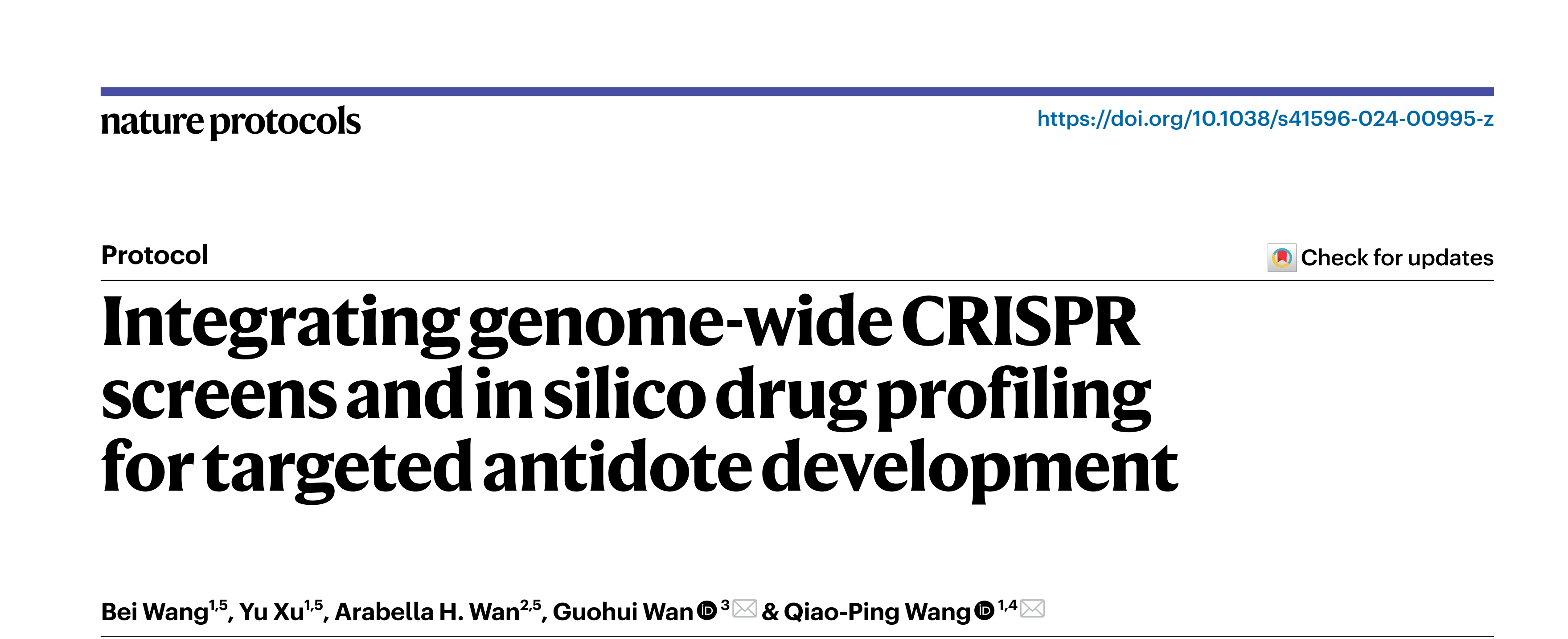 Wang, B., Xu, Y., Wan, A.H., Wan, G. & Wang, QP. Integrating genome-wide CRISPR screens and in silico drug profiling for targeted antidote development. Nat Protoc (2024). https://doi.org/10.1038/s41596-024-00995-z