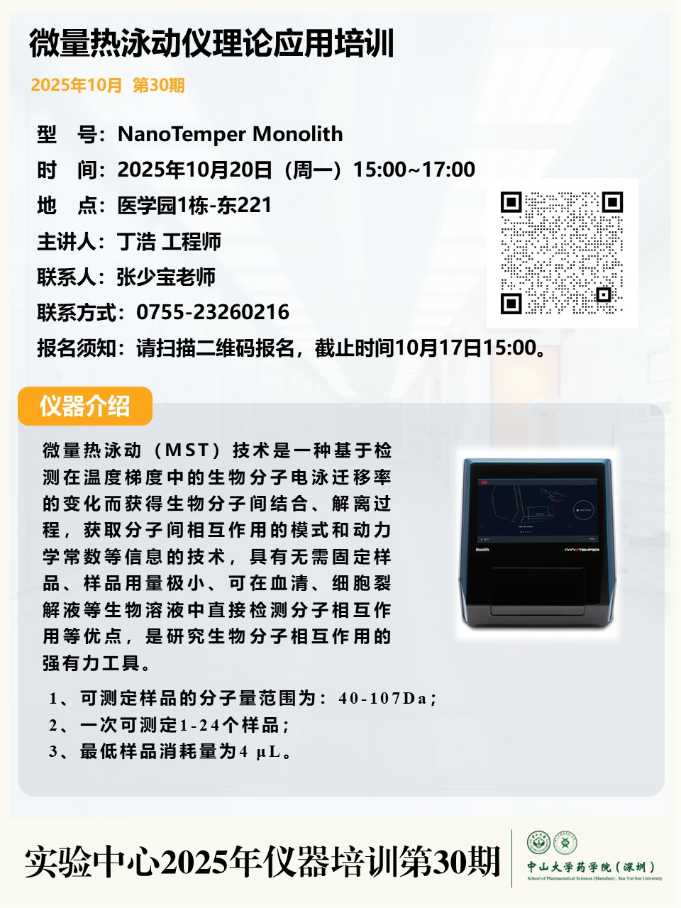 导航痕迹 中山大学药学院(深圳) 实验中心 最新动态 2025年仪器培训第30期——微量热泳动仪理论应用培训 扫描此二维码分享 2025年仪器培训第30期——微量热泳动仪理论应用培训 发布人:网站管理员 发布日期:2025-10-14
